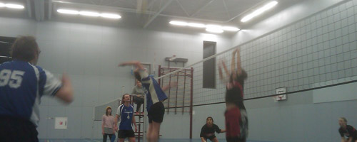 Nummer 95 kijkt rustig toe hoe Jan zijn set-up op een meesterlijke wijze over het net knalt. Het blok van Zeeslag zit er net een slag naast, dat zien ook scheidsrechter nummer 1 én 2 (met vrolijke gele muts en roze vest). Heren 4 van Albatros won de wedstrijd met 4-0. Zeeslag kon na afloop wel door de grond zee zakken. Ze waren vier sets lang dicht in de buurt van een overwinning, maar uiteindelijk zonk het schip dat Zeeslag heren 4 heet.