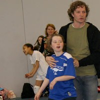 Tijdens de wedstrijd tegen Abcoude, die het eerste jeugdteam zou winnen met 3-0, steekt Giorgio zijn hand omhoog. Coach R. van den Berg (jongere versie) met als assistent-coach R. van den Berg (oudere versie) ziet tijdens een time-out de hand van Giorgio omhoog gaan. Volleybalvraagvanvandaag: waarom dan?
